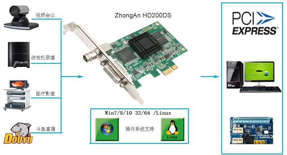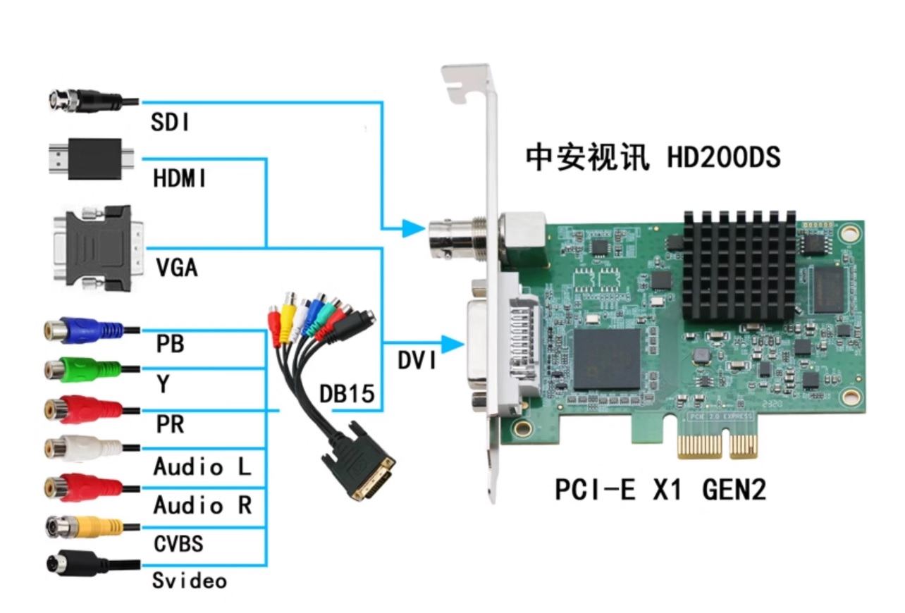 产品简介 | HD200DS一款支持全高清1080P 60HZ高清视频采集卡,板卡采用了高速的PCI-E 2.0 X1接口,